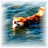 | ロッキーは泳ぎが大好き。 ボールを追いかけるのが得意。 |