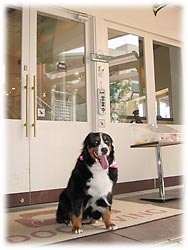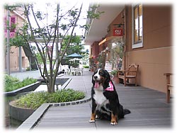 | ** ばーにーのレポート ** (2005.07.13) 1. わんこにお水のサービスがあります。 2. ヴィソラ内はわんこシールで入店可・不可の案内がされています。 3.お散歩は川の土手や広場があります。 |