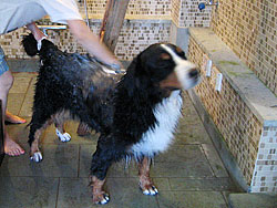 スパを楽しんだ後はシャンプー。 洗ってもらってドライヤーで乾かしてもらって、何とか5時半。 6時の夕食に間に合いそうです。 やっぱり バーニーズのグルーミングは大変です。 |