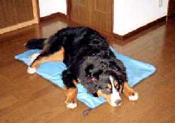 人間は水冷式だからいいけどあたしは空冷式だからいっつも「はあはあ」いっててつらいわ。 日中の散歩なんか問題外よ。 あたしは水浴びが得意じゃないから・・・ やっぱり、クーラーの下で、クーラーマットをひいて寝るのが一番よ。 パパありがとう。寝るときも手放せないわ。 一度やったら癖になりそう!! |