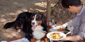 ばーにーもいっぱいほしい。 食べるの大好き。 「デブっち」 「そんなことないよ。 バーニーズはこんなもの・・・。 やっぱり、お肉付きすぎかな。」 「この子の名前は?」 「ばーにーです。」 「知ってるよ。名前は?」 「ばーにーです。」 「あっ、 バーニーズのばーにーです。」 「分かりやすくていいね。」
